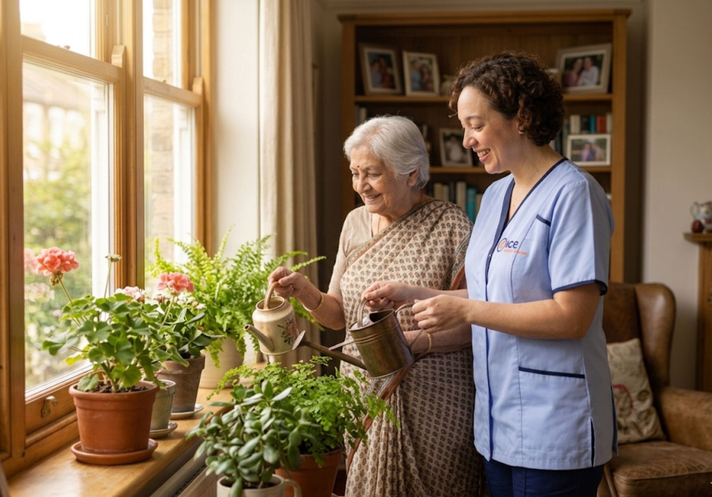 Live-in care means a trained, professional carer moves into your loved one's home and provides continuous, round-the-clock support throughout the day and night. Unlike hourly care visits — where a carer comes and goes — a live-in carer is always present, available and dedicated entirely to one person.